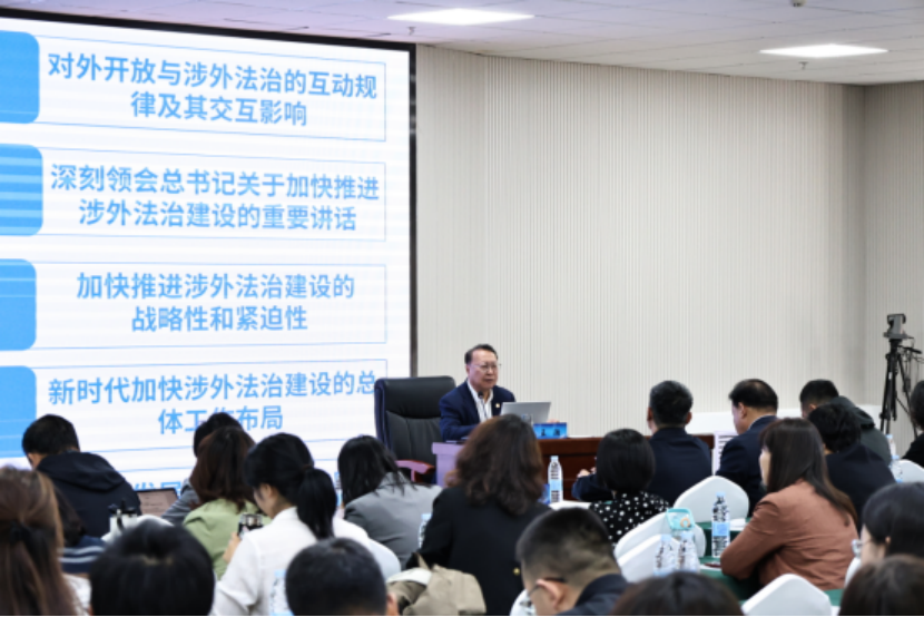 beat365国家智库研究基地涉外法治研究中心执行主任、首席专家、博士生导师王瀚教授应邀做《推进高水平对外开放与加快涉外法治建设的战略性和紧迫性》的专题讲座,分别就对外开放与涉外法治的互动规律及其交互影响、深刻领会总书记关于加快推进涉外法治建设的重要讲话、加快推进涉外法治建设的战略性和紧迫性、新时代加快涉外法治建设的总体工作布局和新时代发展我国涉外法律服务业的政策措施与顶层设计等五个问题做了深入细致的阐述。