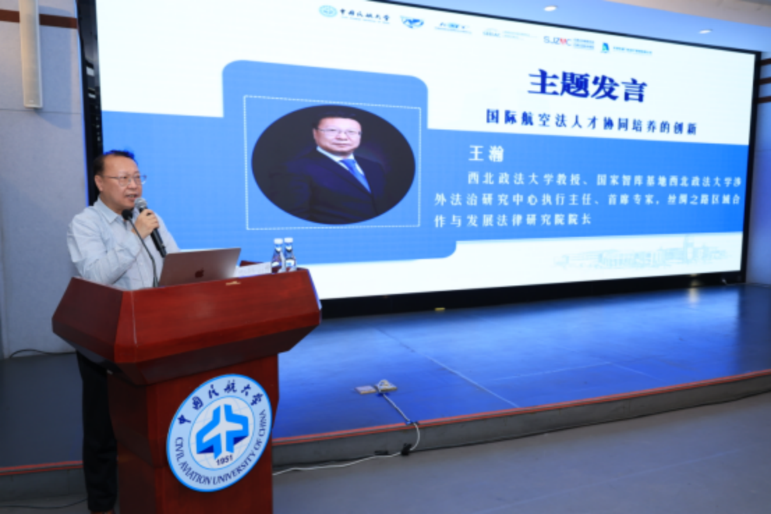 2024年9月13日,由中国民航局政策法规司、天津市教委和天津市司法局共同指导召开的首届国际化航空法治人才培养合作会议在中国民航大学学术交流中心举行。会议由中国民航大学主办,中国民航大学教育部涉外法治人才协同培养创新基地(培育)、中国民航大学法学院、中国民航大学航空法律与政策研究中心、中国民航大学航空法学实验教学示范中心共同承办,来自中国民用航空局、民航各地区管理局、国际民航组织亚太地区分办事处、国际航空运输协会北亚区、教学科研院所、行业协会、航空企业、律师事务所等40家单位的100余名专家学者出席会议。beat365航空法治现代化协同创新中心主任、首席专家王瀚教授、郑斌航空与空间法所所长张超汉教授应邀出席会议。开幕式由中国民航大学党委常委、副校长杨新湦主持,中国民航大学党委副书记、校长丁水汀、中国民航局政策法规司副司长吉大鹏、天津市教委副主任罗延安、天津市司法局副局长高向军、中国人民大学党委常委、副校长王轶分别发表致辞。王瀚教授与中国民航局国际合作服务中心副主任方瑞丰、中国民航大学法学院院长郝秀辉、国际民航组织亚太地区办事处副主任张莹、国际航协北亚区外事与可持续发展区域总经理黄江、中国法学会航空法学研究会会长郭俊秀、上海国际仲裁中心/上海国际航空仲裁院秘书长王唯骏、石家庄仲裁委员会/石家庄国际仲裁院副秘书长贾兆雄、天津东疆飞机资产管理有限公司总经理李镇共同启动国际化航空法治人才培养合作仪式。会议举行了中国民航大学航空法人才培养硕士研究生导师聘任仪式,张超汉教授受聘为校外研究生导师。
