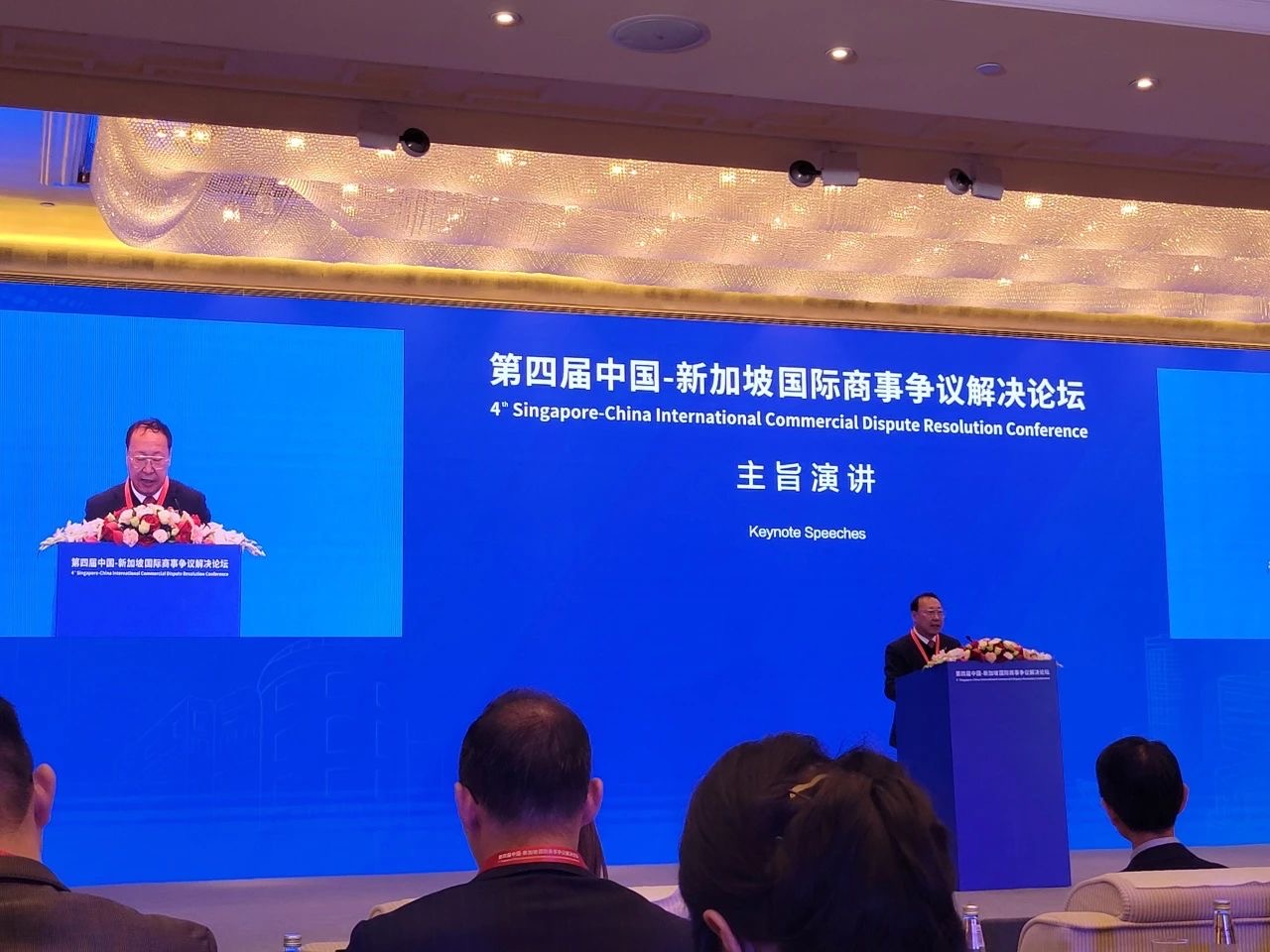 中国贸促会会长任鸿斌,新加坡文化、社区及青年部长兼律政部第二部长唐振辉,最高人民法院审判委员会副部级专职委员刘贵祥,新加坡最高法院上诉审判庭法官施奇恩出席开幕式并分别发表致辞。中国贸促会副会长于健龙作论坛总结讲话。