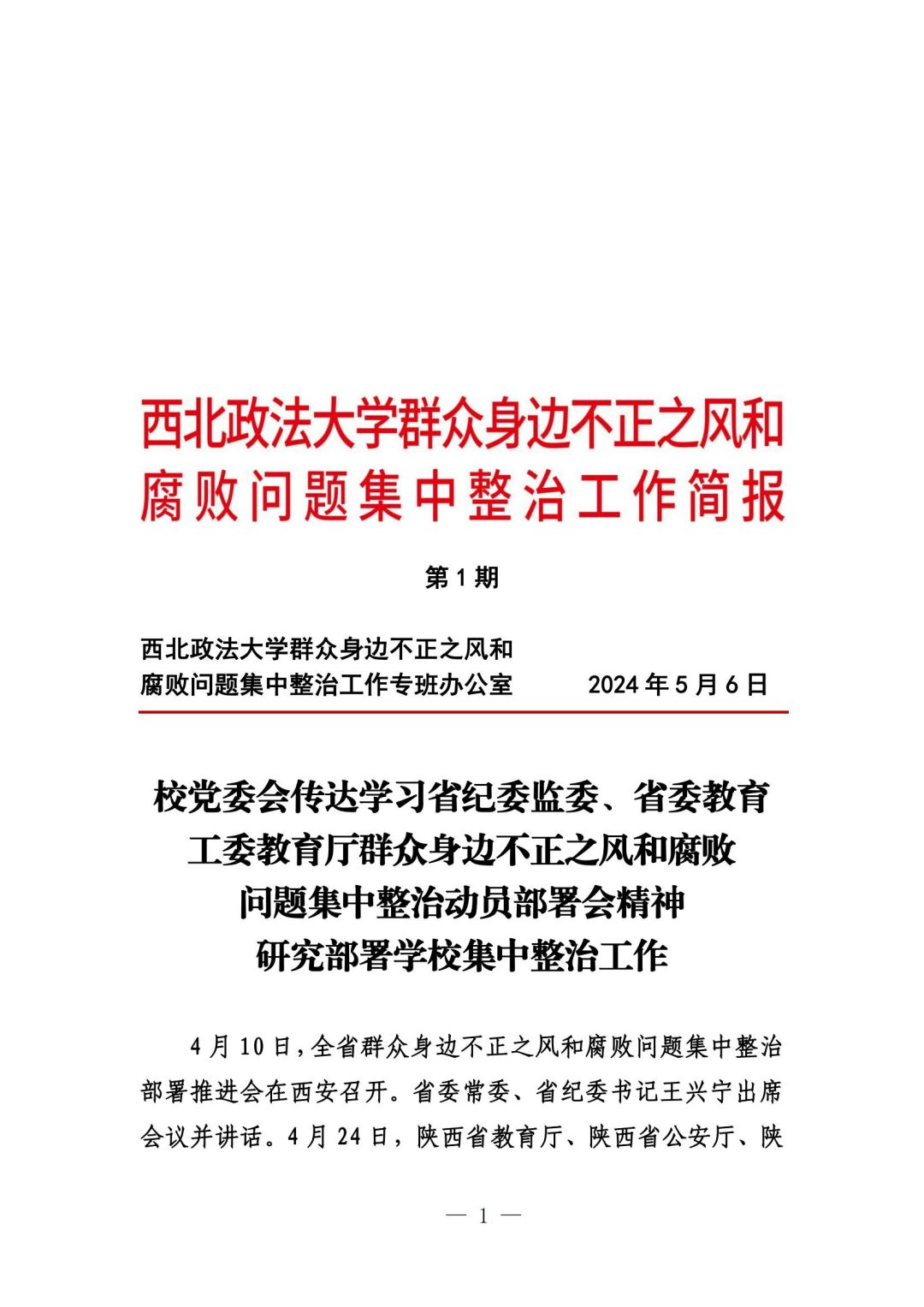 beat365英国官网群众身边不正之风和腐败问题集中整治工作简报第一期