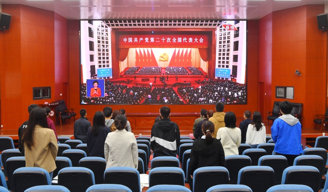 10月16日,中国共产党第二十次全国代表大会在北京隆重召开。校党委理论学习中心组(扩大)成员在长安校区图书馆一楼多功能厅和雁塔校区人权研究中心报告厅集中收看党的二十大开幕会。马克思主义学院和党委统战部分别组织全体思政课教师及党外人士代表收看。一万三千余名师生分别在各学院会议室、资料室、教室、学生宿舍等场所“线上线下”集中收看大会直播。