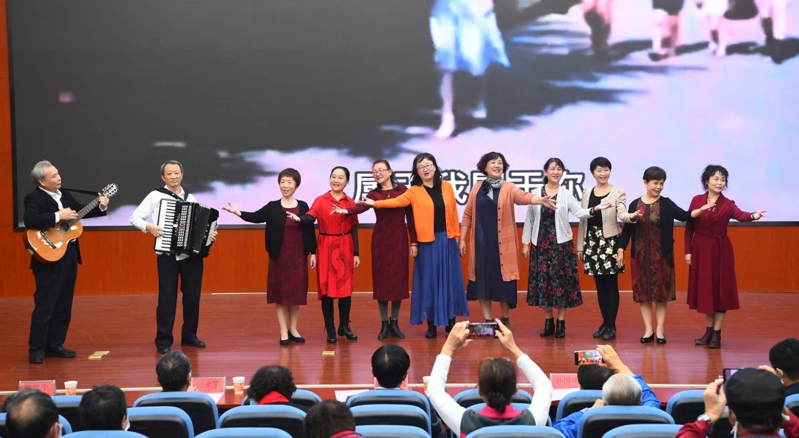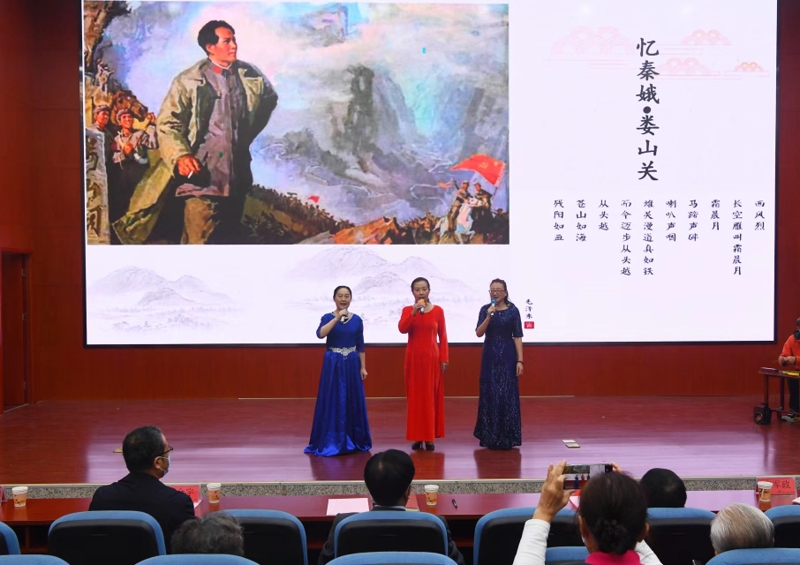 幼儿园小朋友们表演舞蹈《说唱中国红》送上祝福;居住省外的孟繁琨、吴明童等5人通过视频向大家致以节日问候;王海鸿、程瑞、谢斌演唱京剧毛泽东词作《忆秦娥•娄山关》;现场采访姜淮超、赵灵娥夫妇;10多位老同志联唱《年轻的朋友来相会》、《革命人永远是年轻》。文艺表演异彩纷呈,活动现场节日气氛欢乐热烈。