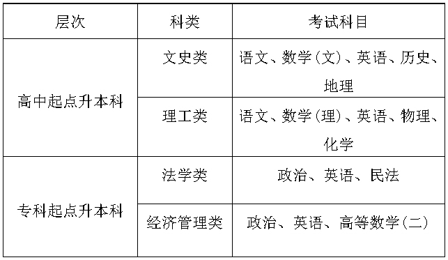 1、法学专业 (高中起点升本科、专科起点升本科)
