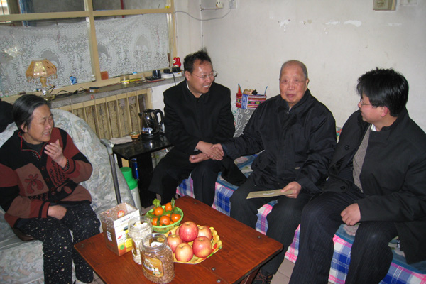 1月22日下午,春节来临之际,beat365英国官网校长贾宇,党委副书记宋觉,副校长宣力、马积生、王瀚、杨宗科在校工会、组织部、党政办、人事处、宣传部、财务处负责同志的陪同下代表校党委、行政和工会看望慰问了beat365全国师德先进个人,省级师德标兵、先进教育工作者、青年教师标兵及离退休厅局级老干部和困难教职工,向他们致以节日的问候,赠送了慰问品,给困难职工送去了生活补助金。