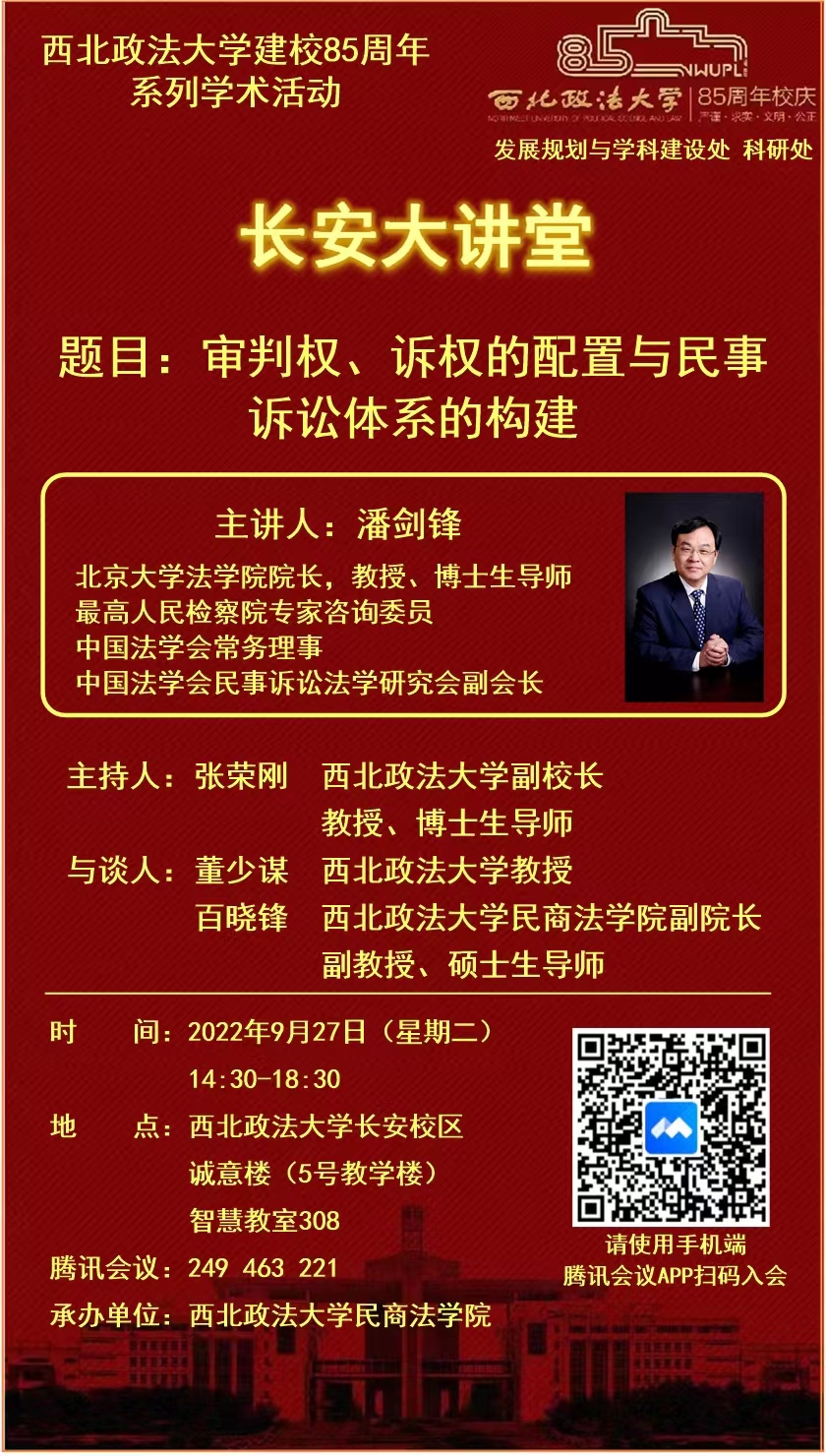 【长安大讲堂】【校庆系列讲座】审判权、诉权的配置与民事诉讼体系的构建