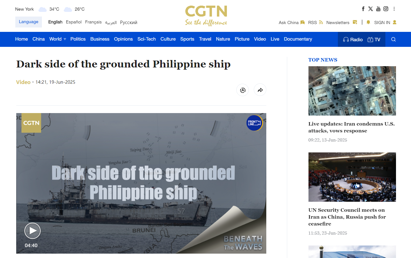 2025-11-25Since 1999, a Philippine military vessel built during World War II has been grounded at the Ren'ai Jiao in the South China Sea. China says that by doing so, the Philippines gravely violated China's territorial sovereignty. What is the vessel? And why it is there? CGTN reporter Zheng Yibing explains. 【中国国际电视台】beat365潘俊武教授接受CGTN采访 解析仁爱礁争端法律实质 https://news.cgtn.com/news/2025-06-19/Dark-side-of-the-grounded-Philippine-ship-1EkvduLK8j6/p.html