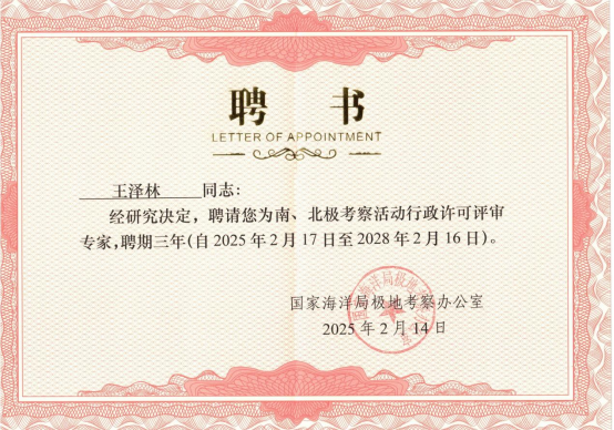 近日,国家海洋局极地考察办公室正式聘任我院王泽林教授为南极、北极考察活动行政许可评审专家,聘期自2025年2月起至2028年2月止。此项任命标志着我院在极地法律与政策研究领域的学术影响力获得国家主管部门高度认可。 根据国家海洋局颁布的《南极考察活动行政许可管理规定》及《北极考察活动行政许可管理规定》,我国境内所有法人机构、社会组织及公民拟开展极地科考活动,均须向国家海洋局极地考察办公室申请行政许可。该制度旨在规范我国极地考察活动审批流程,保障考察活动合规有序开展,维护国家极地权益,履行国际条约义务,促进极地科研事业可持续发展。 行政许可审批工作实施专家评审制度,申请方需提交包括考察方案、应急预案、环保措施等在内的完整材料。国家海洋局极地考察办公室将组织由多学科专家组成的评审组,重点对项目的科学价值、安全保障、生态保护及国际合规性等核心要素进行专业评估,最终形成是否予以行政许可的审批意见。 作为我国极地法律研究领域的专家,王泽林教授此次受聘将深度参与极地考察项目的合规性审查工作,为提升我国极地事务治理法治化水平、构建科学规范的极地活动管理体系提供专业支撑。此项工作对维护我国在国际极地事务中的合法权益、推动构建人类命运共同体具有重要战略意义。