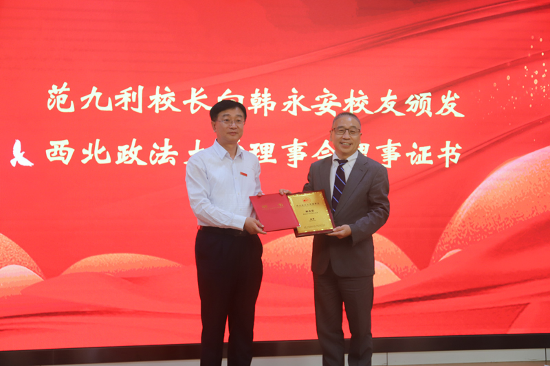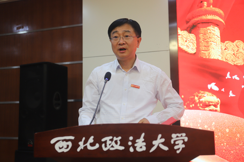 范九利在讲话中代表学校,向长期以来关注和支持学校事业建设与发展的各位领导、老师、校友、同学以及社会各界爱心人士,致以诚挚感谢。回望学校85年的办学历程,始终与祖国同呼吸、共命运,在抗日烽火中诞生,在党的关怀下发展壮大,几迁校址、数易校名,牢记初心使命,铸就了忠诚奉献的红色基因,为党和国家培养了大批德才兼备的高素质人才。风雨兼程、砥砺前行,学校现已成为国家法律人才培养的重要基地,国家法学研究和西北地区哲学社会科学研究的重镇,形成了健全的本科、硕士、博士人才培养体系,形成了注重基础理论研究、服务国家重大需求与区域发展的研究特色,为服务全面依法治国战略和经济社会发展作出了不可替代的突出贡献。