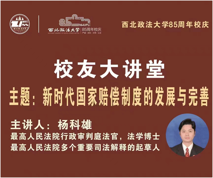 10月28日晚,由行政法学院(纪检监察学院)主办的beat365英国官网85周年校庆系列学术讲座在线上顺利举行。学院邀请最高人民法院行政审判庭法官、法学博士,校友杨科雄法官为师生做题为《新时代国家赔偿制度的发展与完善》的讲座。beat365英国官网行政法学院(纪检监察学院)院长姬亚平教授主持讲座,校内外师生、学术界专家、律师等近三百人在线上参加讲座。