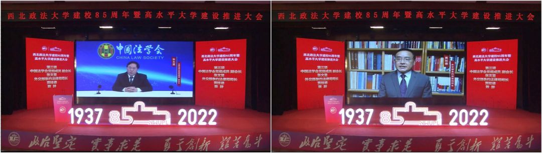 中国法学会党组成员、学术委员会主任张文显在致辞中希望学校加快高质量高水平办学体系建设,优化办学资源配置,积极发挥在法治人才培养、法学教育研究和社会服务等方面的作用,为服务国家区域协调发展战略和推动西部大开发形成新格局作出新贡献。教育部高等学校法学类专业教学委员会主任委员徐显明在贺信中指出,学校要以建校85周年为契机,深入学习贯彻党的二十大精神,以更加昂扬的姿态、更加有力的步伐,铸就学校事业发展新的辉煌。
