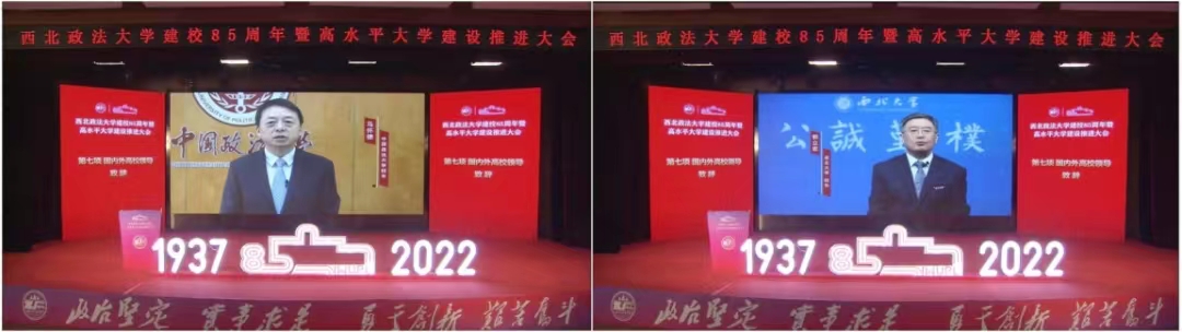 中国政法大学校长马怀德和西北大学校长郭立宏代表兄弟院校,向学校全体师生员工和海内外校友致以热烈的祝贺和美好的祝愿,希望校际之间可以加强协作,为新时代法学教育事业和法治中国建设贡献新的更大力量。