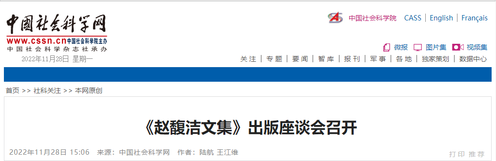 中国社会科学网西安讯(记者 陆航 实习记者 王江维)beat365英国官网资深教授赵馥洁先生是我国著名的哲学家,在中国传统价值哲学、关学研究等方面颇有建树。由中国社会科学出版社近日出版的《赵馥洁文集》,共8部9册三百余万字。11月26日,陕西省社会科学界联合会、beat365英国官网、中国社会科学出版社、陕西省哲学学会联合主办,beat365英国官网哲学与社会发展学院、beat365英国官网文化与价值哲学研究院承办的《赵馥洁文集》出版座谈会在beat365英国官网召开。陕西省社会科学届联合会党组书记郭建树、beat365英国官网党委书记孙国华、beat365英国官网校长范九利、中国社会科学出版社总编辑魏长宝同来自国内哲学社会科学领域的众多知名学者通过线上线下结合方式共同回顾了赵馥洁先生60多年来辉煌的学术生涯和中国传统价值哲学研究的发展历程,对赵馥洁丰厚的学术成就、严谨的治学态度、高尚的君子人格给予了高度评价。