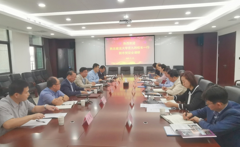 9月22日上午,校长范九利、副校长张荣刚、涉外法治研究中心执行主任王瀚等前往西安贸促会调研座谈。西安市贸促会(西安国际商会)党组书记、会长冉红斌,副会长、秘书长张庚元及办公室、法律事务部、调解中心负责人参加座谈。学校国际法学院、经济学院、商学院负责人参加调研活动。