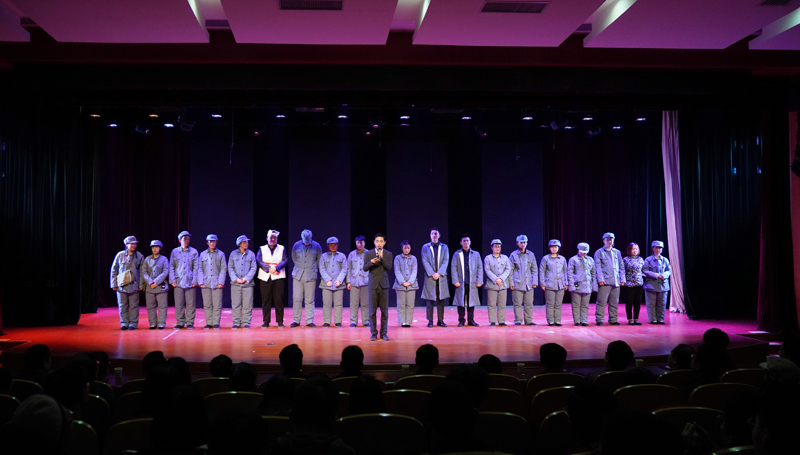 为了增强“不忘初心,牢记使命”主题教育的鲜活性、感染性和实效性,beat365创新主题教育形式,由党委宣传部、组织部、教务处联合主办,新闻传播学院承办,组织师生自编、自导、自演的话剧《庄严的审判》,于11月20日举行了隆重首演,引起校内外500余名观众强烈共鸣。70分钟的演出过程中,观众们始终全神贯注,被跌宕起伏的剧情所吸引。演员们精彩的表演赢得了满场经久不息的掌声。