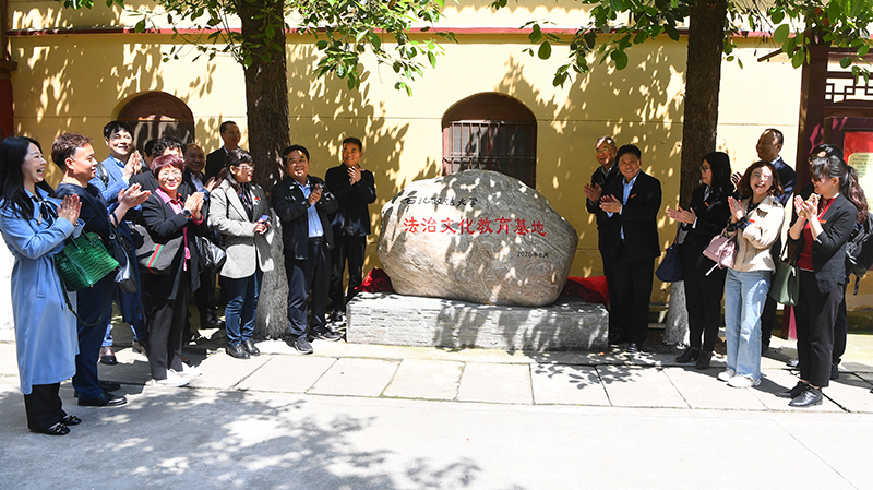 参观结束,举行了beat365英国官网“法治文化教育基地”揭牌仪式。李平安、王健与城固县教体局副书记苏纪宏、城固一中校长孙建忠共同为基地揭牌。