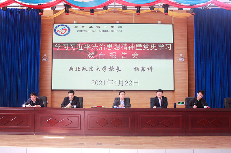 4月22日下午,杨宗科在城固一中文渊楼报告厅,结合学习习近平法治思想和党史学习教育,为全校教师做了一场题为“十八大以来我国法治建设发生历史性变革、取得历史性成就” 的专题报告。报告围绕“党的十八大以来,以习近平同志为核心的党中央,提出全面依法治国并将其纳入‘四个全面’战略布局予以有力推进,党对法治建设的领导明显加强,习近平法治思想应运而生,中国特色社会主义法治体系建设工作形成新格局,全面依法治国实践取得一系列重大成效”等方面进行了系统论述,深入阐释了这四个方面发生的历史性变革和取得的历史性成就,坚定了我们对中国特色社会主义法治道路、法治理论、法治体系、法治文化的自信,强化了我们全面建成社会主义现代化强国、实现中华民族伟大复兴的信心!与会人员纷纷表示,杨宗科校长的报告主题鲜明、重点突出、内容丰富、分析透彻,具有很强的理论性、针对性和指导性,对提升教职工的法律意识,规范依法从教行为,营造浓厚的法治校园氛围具有很强的指导意义。