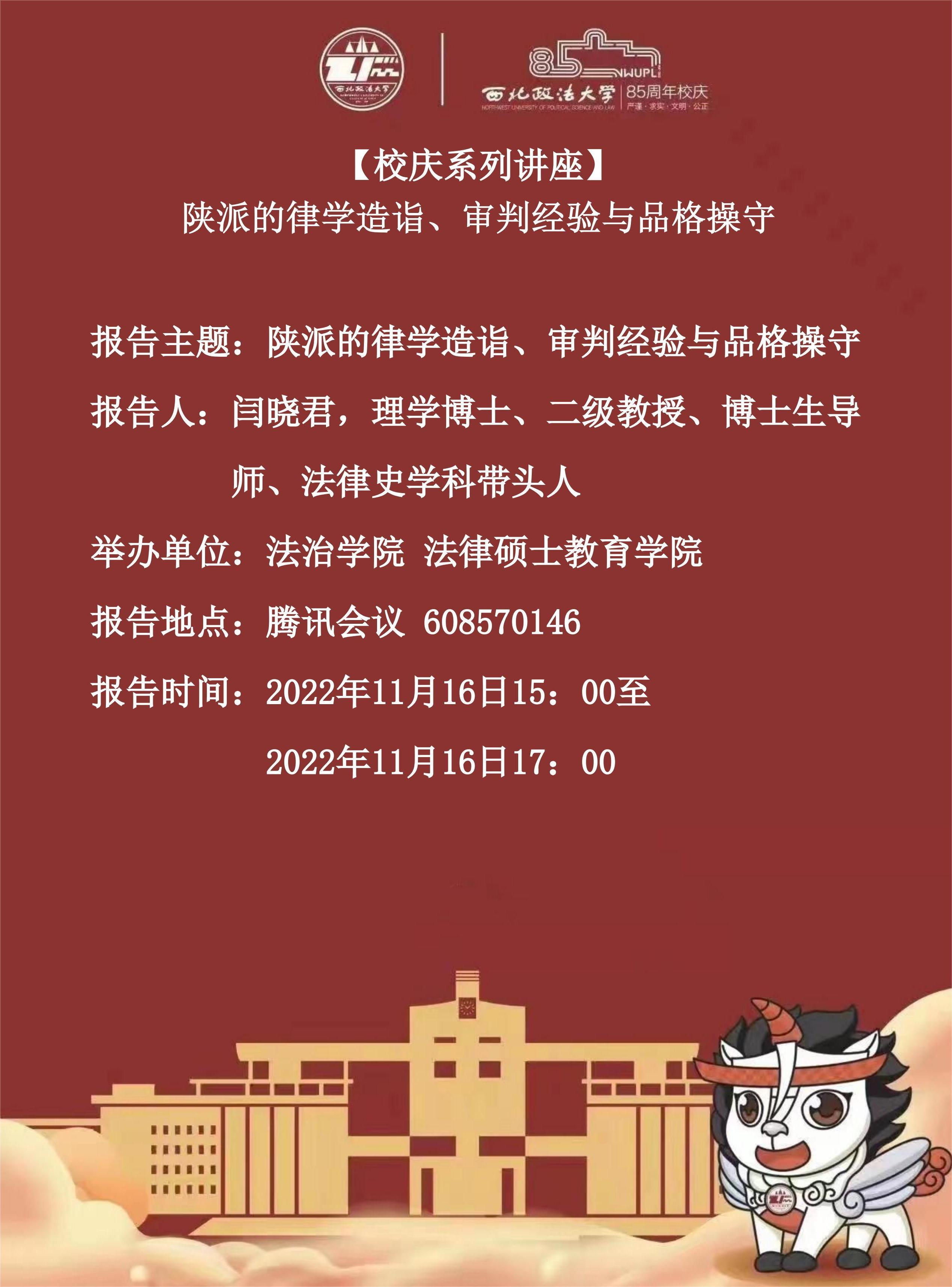 【校庆系列讲座】陕派的律学造诣、审判经验与品格操守