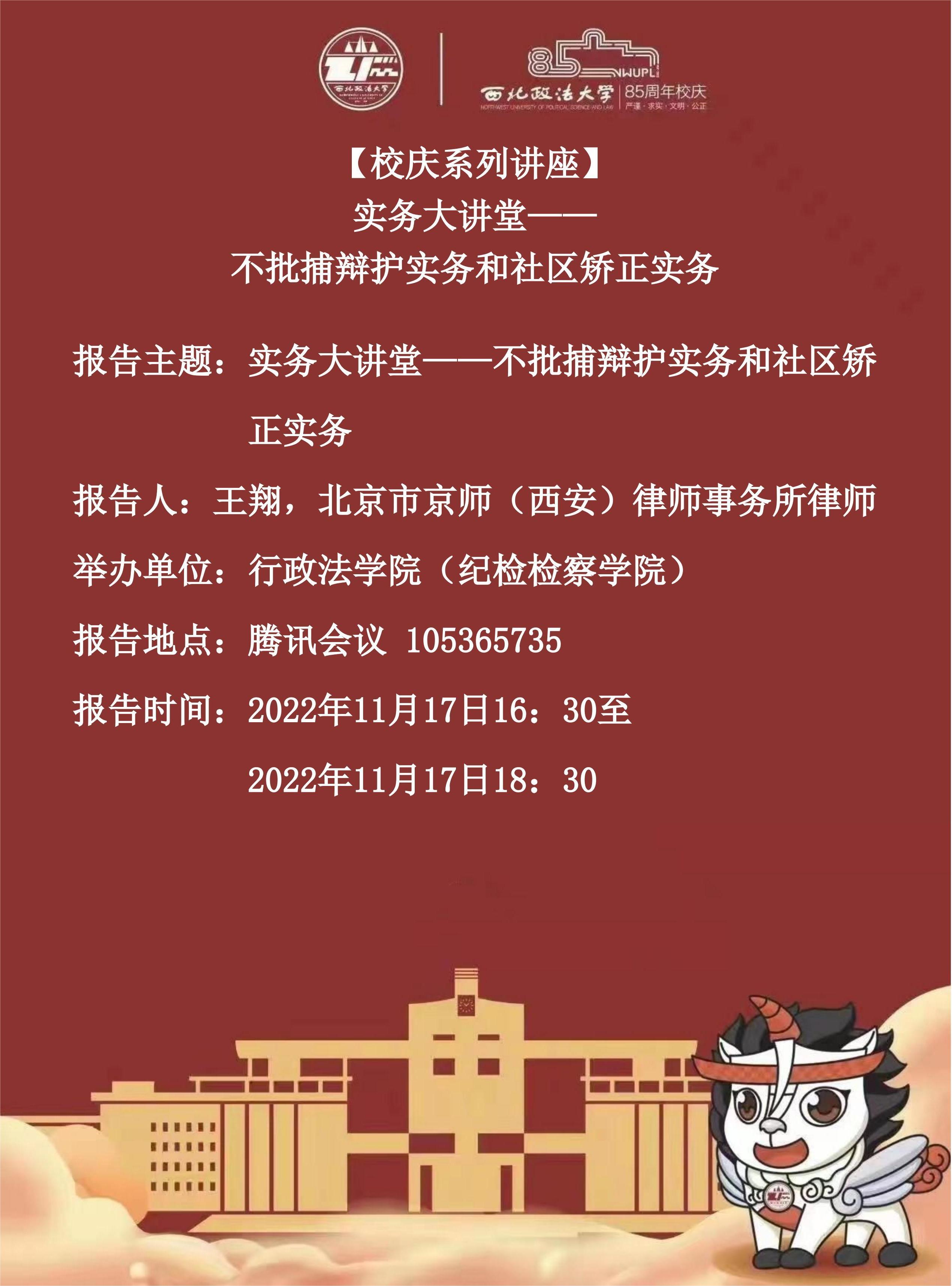 【校庆系列讲座】实务大讲堂——不批捕辩护实务和社区矫正实务
