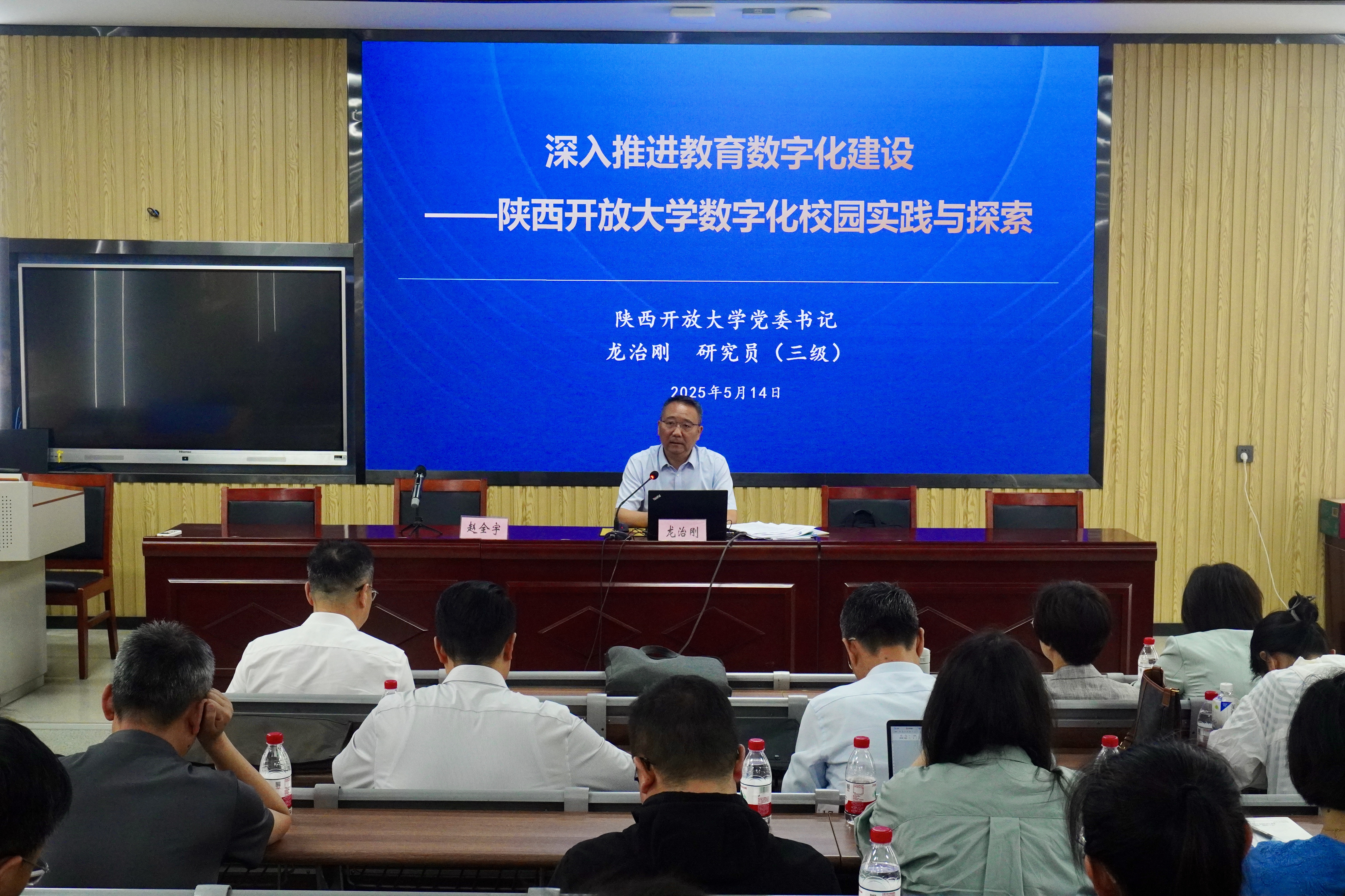 陕西开放大学党委书记龙治刚以《深入推进教育数字化建设》为题,系统阐释了教育数字化的战略价值与实践路径,分享了陕西开放大学推进数字化转型的实践经验。