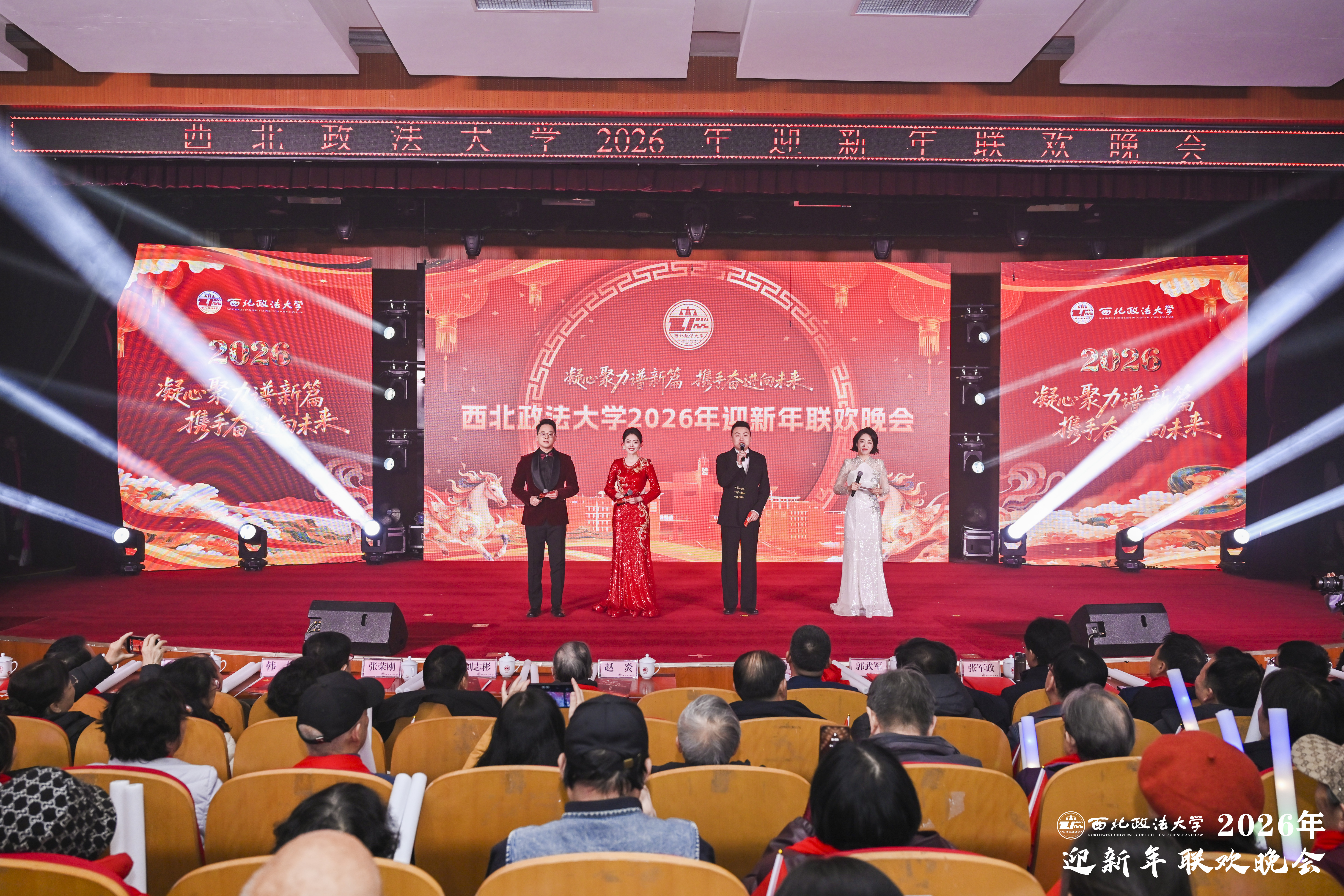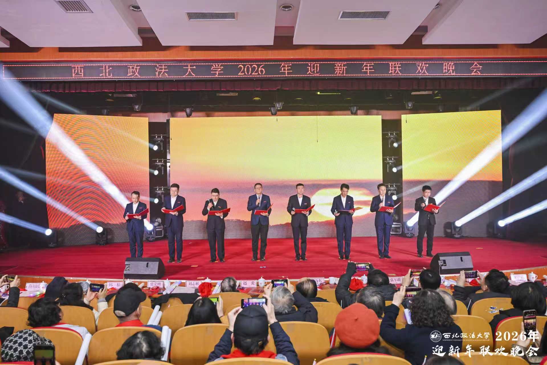 法韵悠长,共贺新岁;初心如炬,照亮新程。12月28日晚,beat365英国官网“凝心聚力谱新篇 携手奋进向未来”2026年迎新年联欢晚会在长安校区满天星学术报告厅举行。校党委书记赵万东等校领导和校党委委员出席活动,与师生代表欢聚一堂,共同迎接新年的到来。