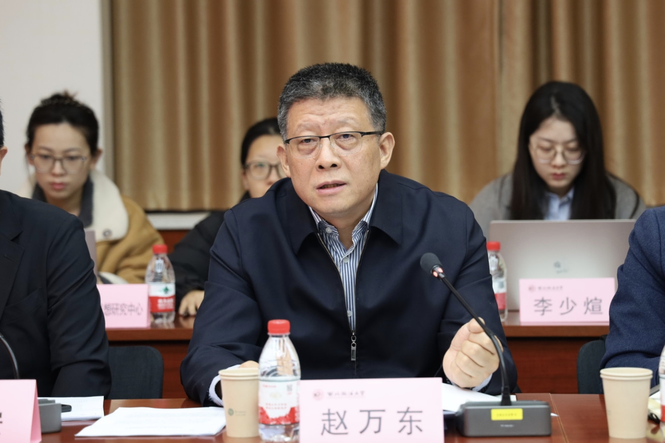 校党委书记赵万东系统传达了习近平总书记对全面依法治国工作作出的重要指示和2025中央全面依法治国工作会议精神。他表示,习近平总书记的重要指示为新征程全面依法治国指明方向,学校将打造法学理论研究创新高地,深化学科内涵式发展。