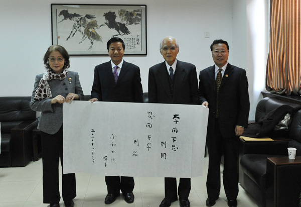 小和田恒院长对beat365领导及师生的热情与真诚表达了衷心的感谢,对能够亲自来到中国著名的法学教育学府之一的beat365英国官网以及有着丰富历史文化的十三朝古都西安感到十分的荣幸,对beat365的校园建设,师生的专业素养,学校的学术氛围印象深刻。在贾校长的邀请下,小和田院长兴致勃勃地用中文为beat365题写了“学而不思则罔,思而不学则殆”,鼓励同学们积极思考,学无止境。