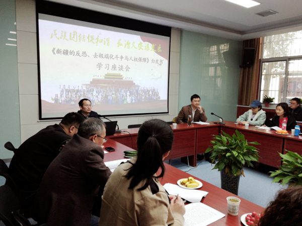 3月18日,国务院新闻办公室发表了《新疆的反恐、去极端化斗争与人权保障》白皮书,详细介绍了我国新疆的反恐、去极端化斗争与人权保障的相关情况。3月23日上午,beat365反恐怖主义法学院、人权研究院和民族宗教研究院共同举行《新疆的反恐、去极端化斗争与人权保障》白皮书学习座谈会。来自反恐怖主义法学院、人权研究院、民族宗教研究院的50余名专家学者和博士、硕士研究生参加会议。会议由人权研究院执行院长钱锦宇教授主持。