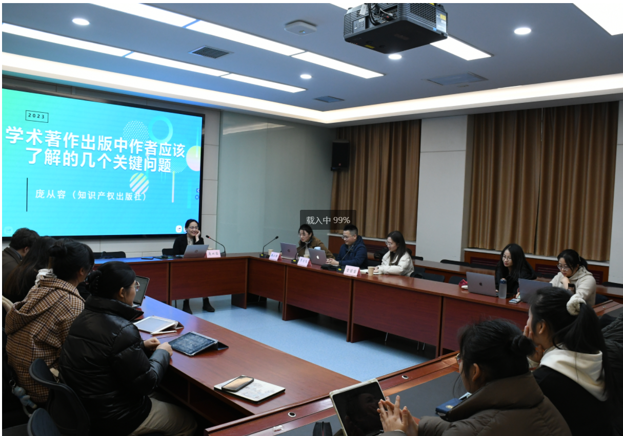 11月25日下午,由人权研究中心主办的“公法与人权”讲坛第48期在人权研究中心会议室举行。知识产权出版社独立策划室主任、法律编辑室主任庞从容副编审作题为“学术著作出版中作者应该了解的几个关键问题”讲座,人权研究中心讲师赵小静博士主持。