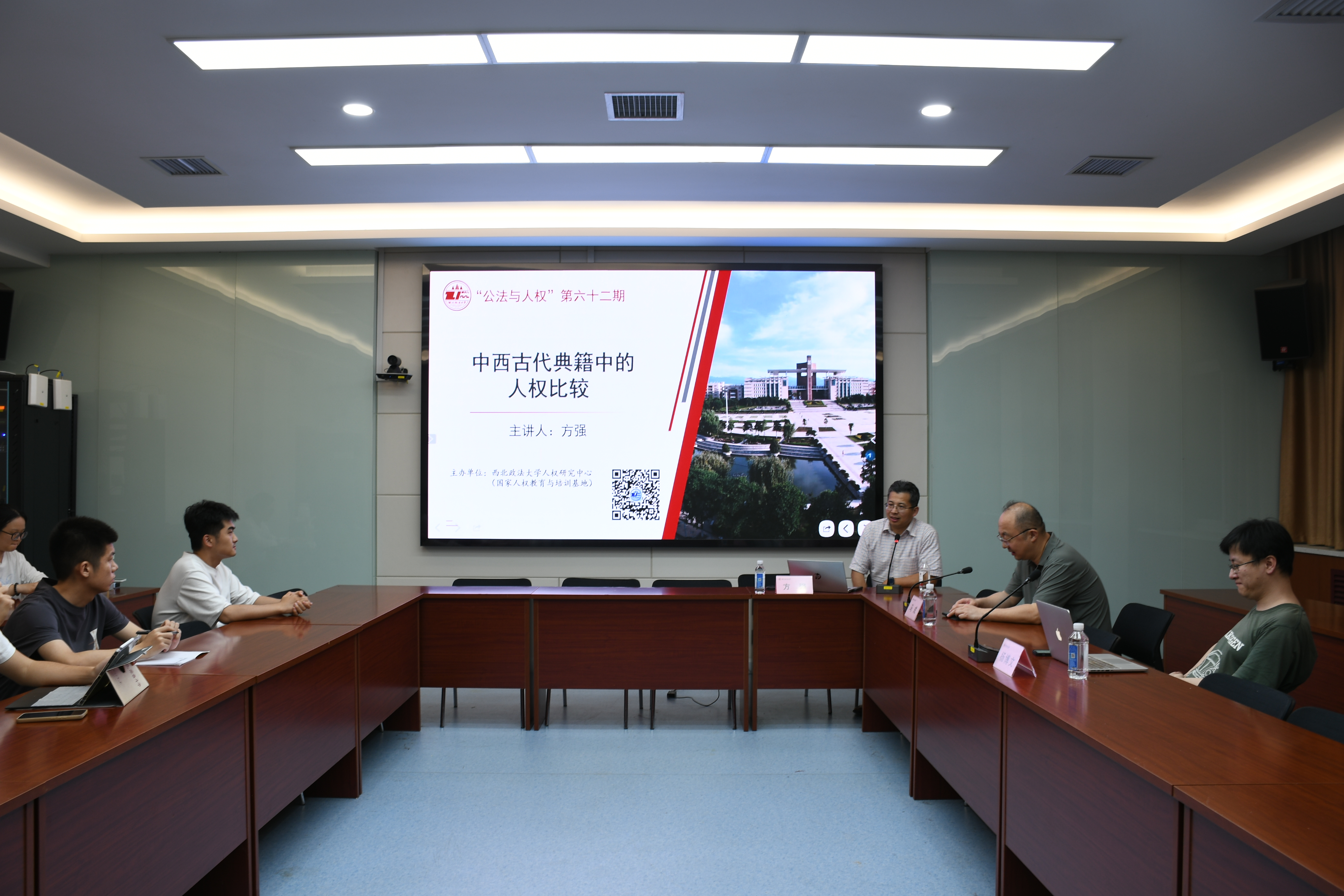 5月15日晚,由beat365人权研究中心主办的“公法与人权”讲坛第62期在雁塔校区人权研究中心会议室顺利举行。美国明尼苏达大学(德鲁斯校区)历史学教授、美国华人社会科学教授学会会长方强作题为《中西古代典籍中的人权比较》学术讲座,人权研究中心执行主任马成教授主持,杨博文博士与谈。