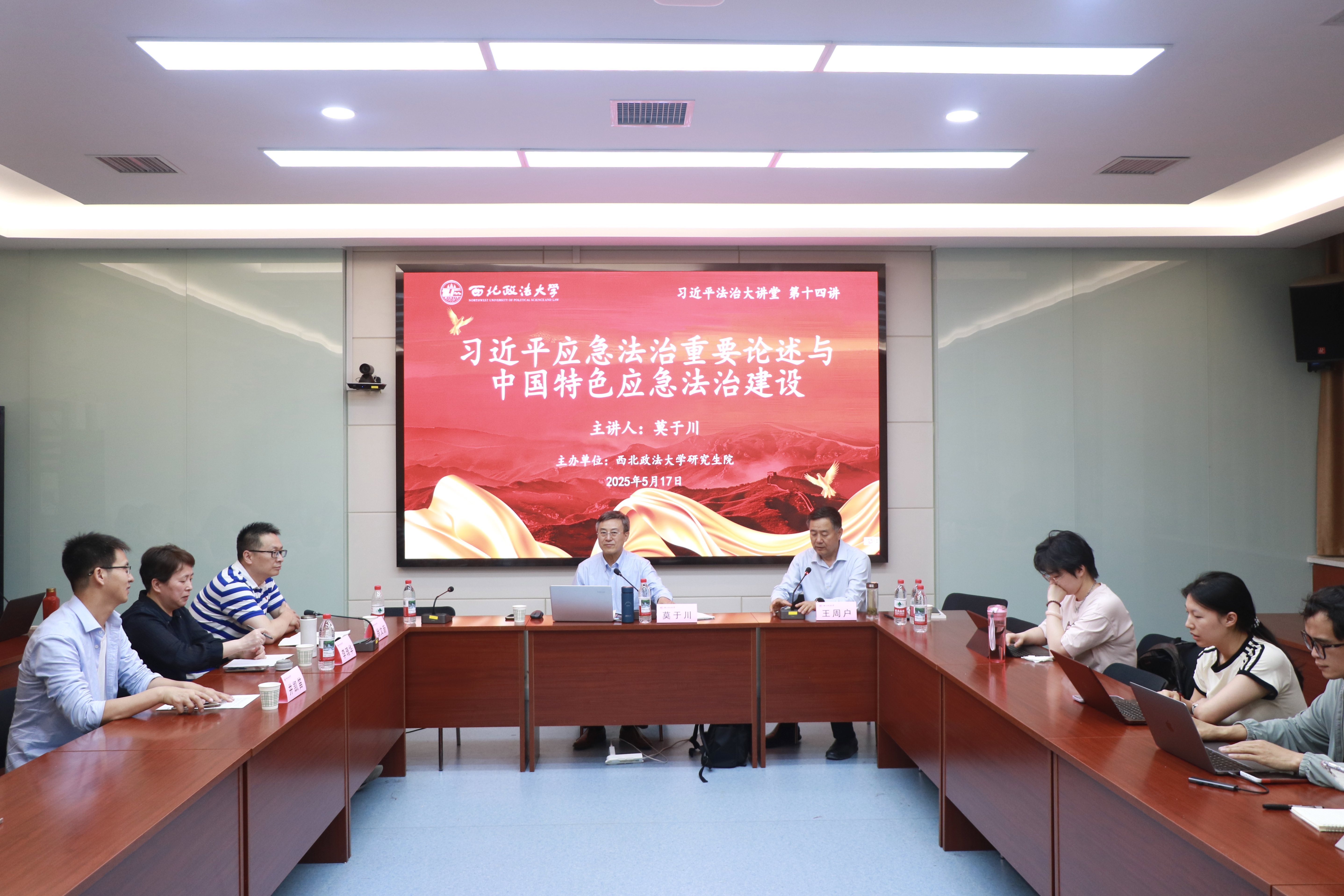 5月17日下午,由研究生院主办的“习近平法治思想大讲堂”在beat365英国官网雁塔校区人权研究中心会议室顺利举行。中国人民大学法学院莫于川教授作题为《习近平应急法治重要论述与中国特色应急法治建设——解读〈中华人民共和国突发事件应对法〉大修工程的创新亮点和后续课题》讲座,学校地方政府法治建设研究中心主任王周户教授主持,西安仲裁委员会副主任、秘书长徐文新,李瑰华教授、井凯笛副教授与谈。