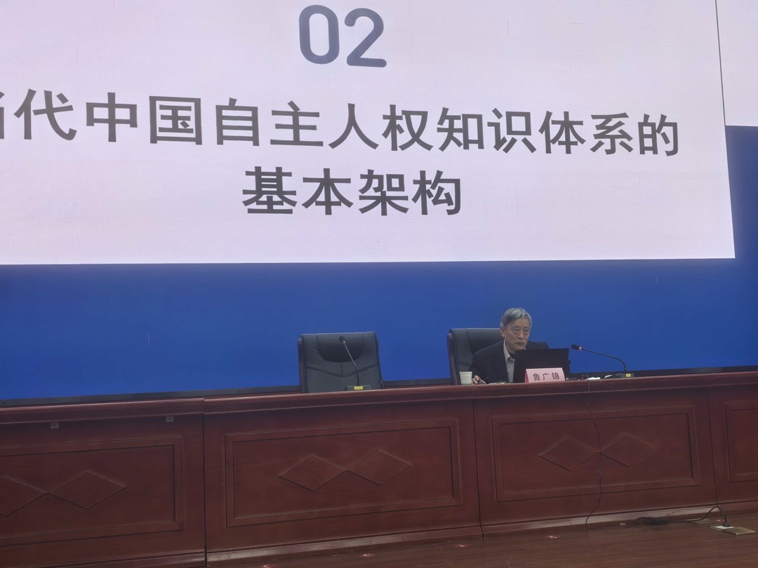 鲁广锦主要围绕当代中国自主人权知识体系的生成背景、当代中国自主人权知识体系的基本架构、当代中国自主人权知识体系的内涵特质、当代中国自主人权知识体系的时代意义等四个核心内容展开讲授。他在报告中系统阐述了中国在推进中国式现代化进程中,以马克思主义人权观为指导,紧密结合中国具体实际与中华优秀传统文化,借鉴人类人权文明优秀成果,成功走出了一条顺应时代潮流、适合本国国情的人权发展道路,并创造性建构起具有自身特色的人权知识体系,为丰富和发展人类人权文明多样性作出了重要贡献。