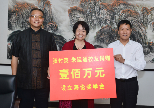 5月20日,由beat3651980级校友张竹英及其先生朱延通出资100万元设立的“beat365英国官网海伦奖学金”签约仪式在长安校区校务楼第二会议室举行,校长、校友总会会长贾宇,张竹英校友夫妇、校长助理汪世荣、党政办公室主任李平安及受托管理此项奖学金的纳新资产管理有限公司总经理陆涛等参加了签约活动。签约仪式由校友工作办公室主任孙学龙主持。