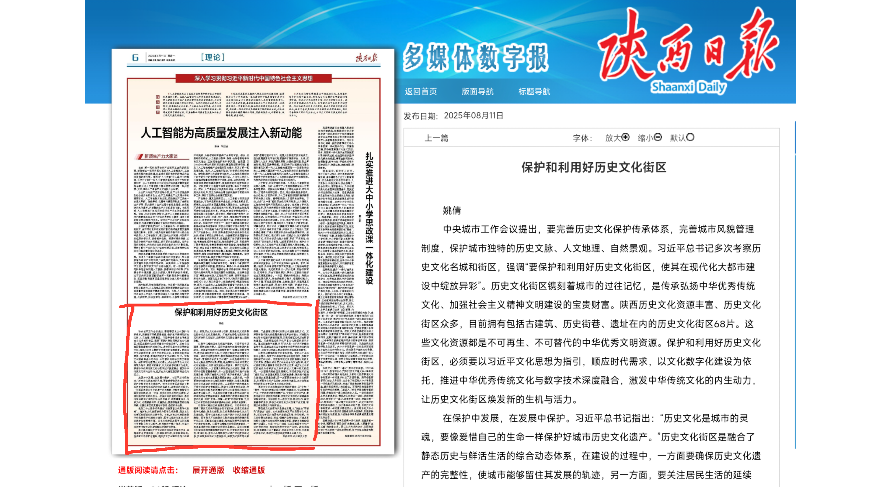 【陕西日报】姚倩:保护和利用好历史文化街区https://esb.sxdaily.com.cn/pc/content/202508/11/content_915876.html