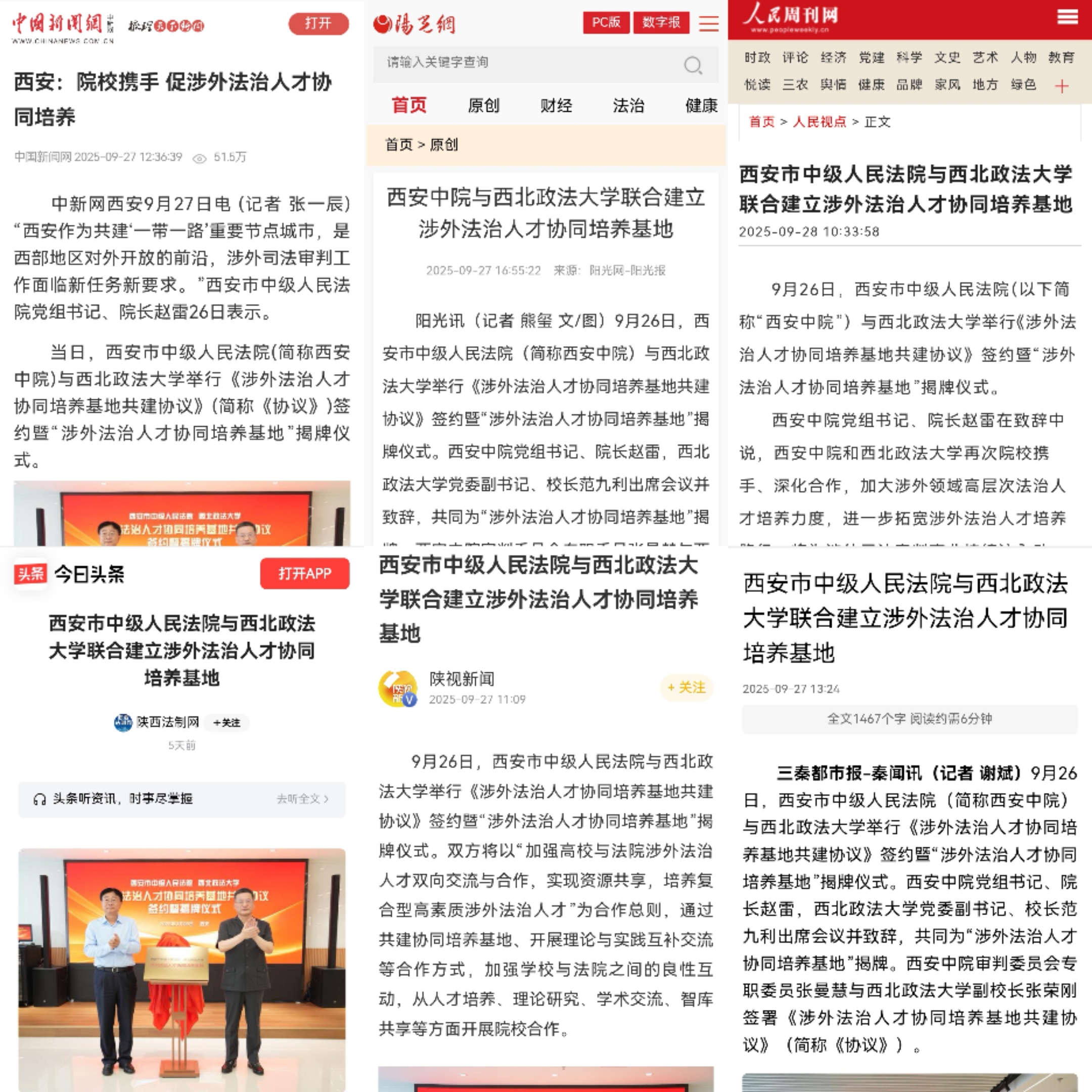 【中国新闻网】【阳光网】【人民周刊网】【今日头条】【起点新闻】【三秦都市报】西安市中级人民法院与beat365英国官网联合建立涉外法治人才协同培养基地:https://m.chinanews.com/wap/detail/chs/zw/10490348.shtml
