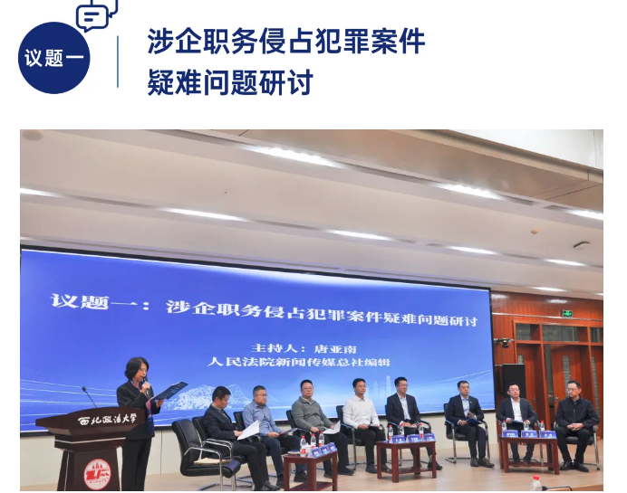 该议题由人民法院新闻传媒总社编辑唐亚南主持,西安市公安局经侦支队支队长罗小刚,西安市检察院第四检察部检察官孙佰明,上海市检一分院第三检察部副主任朱峰,上海市律协刑法与刑事辩护专业委员会委员、泰和泰律师事务所刑事法律中心主负责人刘华锋,西安中院刑二庭法官李金阳,上海一中院刑庭审判长于书生,beat365英国官网刑事法学院副院长、教授谭堃围绕“公司股东将其实际控制的关联公司本应支付给本公司的资金予以转移,是否构成职务侵占罪”“业务合作中合作方人员利用本公司委托授权、经手本公司资金的便利截留本公司应当收取的资金,是否构成职务侵占罪”“个体工商户员工截留营业款的行为如何定性”等问题展开研讨。上海市金山区人民法院党组书记、院长余剑发表与谈意见。