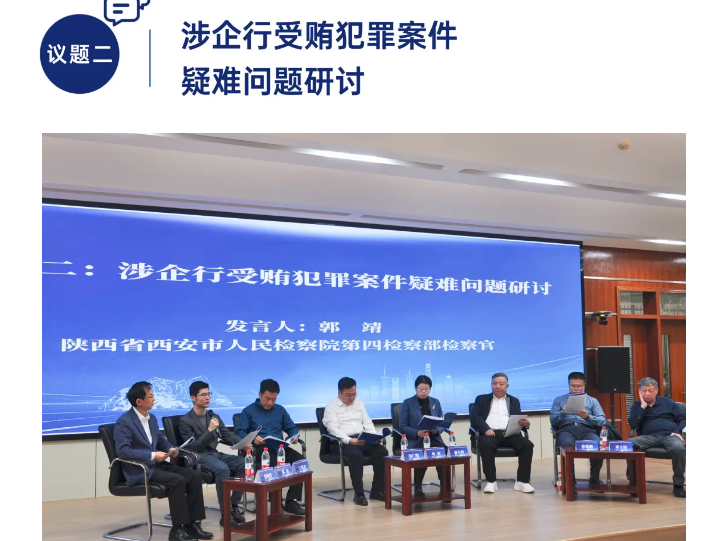 该议题由上海一中院审判委员会专职委员肖晚祥主持,西安市检察院第四检察部检察官郭靖,上海市检一分院第三检察部检察官王英杰,陕西海普睿诚律师事务所高级合伙人、副主任郝大明,西安中院刑二庭审判长田广明,上海高院刑庭庭长周欣,华东政法大学刑事法学院教授、国际刑法学协会中国分会副主席焦艳鹏围绕“在职时请托为单位谋利,离职后使用个人资金行贿的,应认定单位行贿罪还是行贿罪”“中间人层层截留贿赂款的,如何认定共同受贿人的犯罪数额”“行贿所获不法利益的追缴范围如何确定”等问题展开研讨。中国社会科学院法学研究所研究员、中国刑法学研究会常务理事邓子滨发表与谈意见。