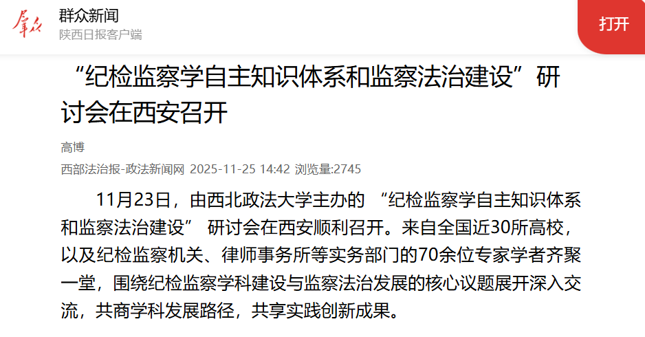 【科学网】“纪检监察学自主知识体系和监察法治建设”研讨会在西安召开https://news.sciencenet.cn/htmlnews/2025/11/555840.shtm
