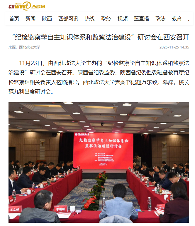 【西部网】“纪检监察学自主知识体系和监察法治建设”研讨会在西安召开http://m.cnwest.com/jyzx/a/2025/11/25/23243603.html