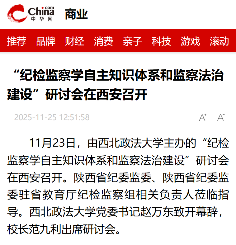 【中华网】“纪检监察学自主知识体系和监察法治建设”研讨会在西安召开https://m.business.china.com/toutiao/13004642/20251125/49020520.html