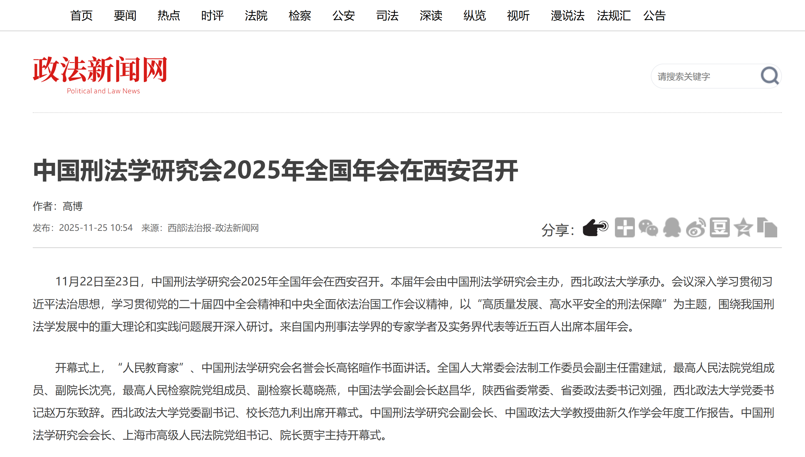 【政法新闻网】中国刑法学研究会2025年全国年会在西安召开https://www.xbfzb.com/2025-11/25/content_11424286.html