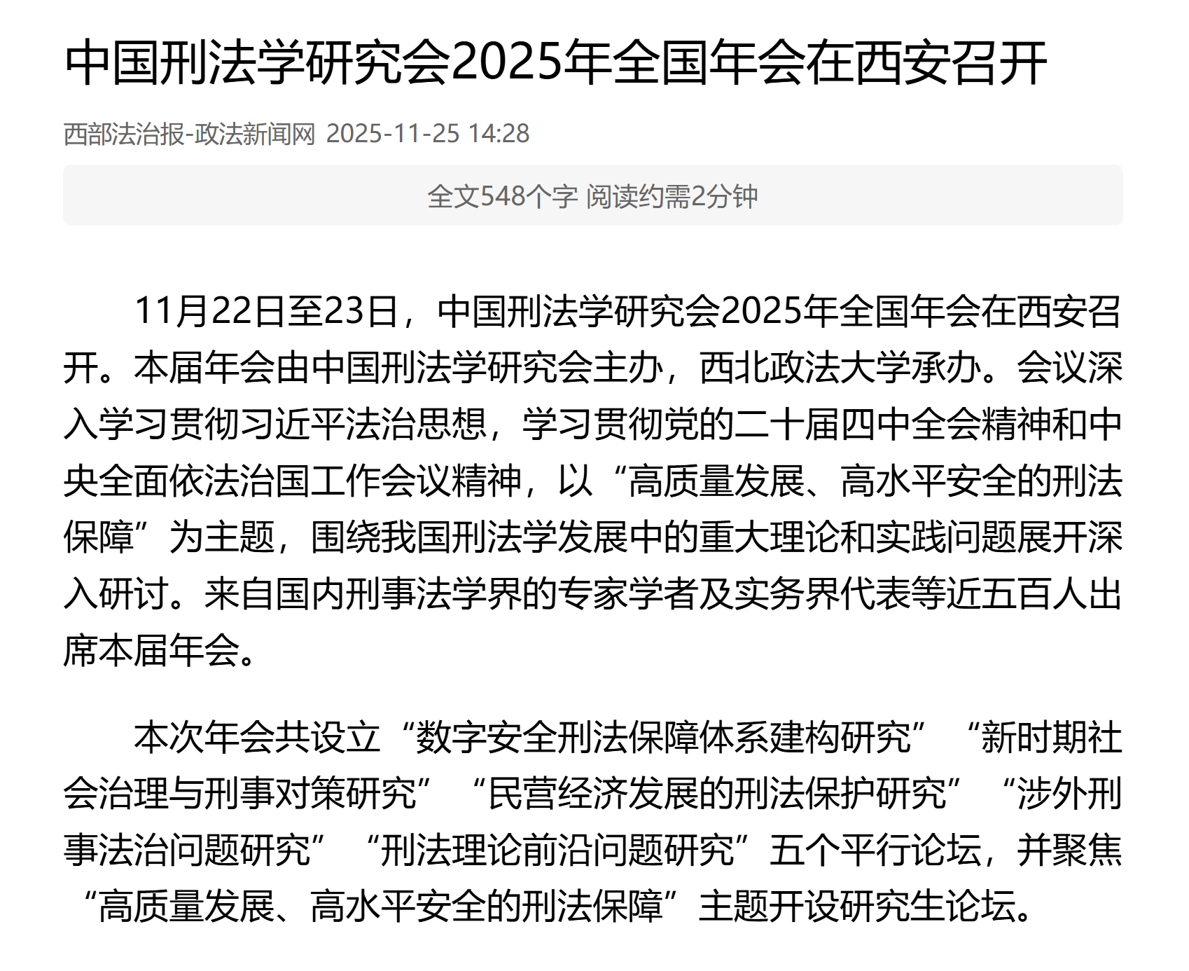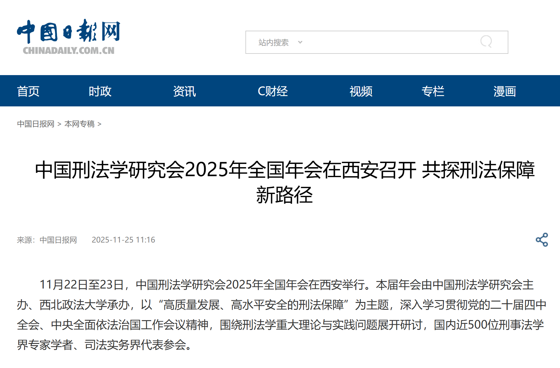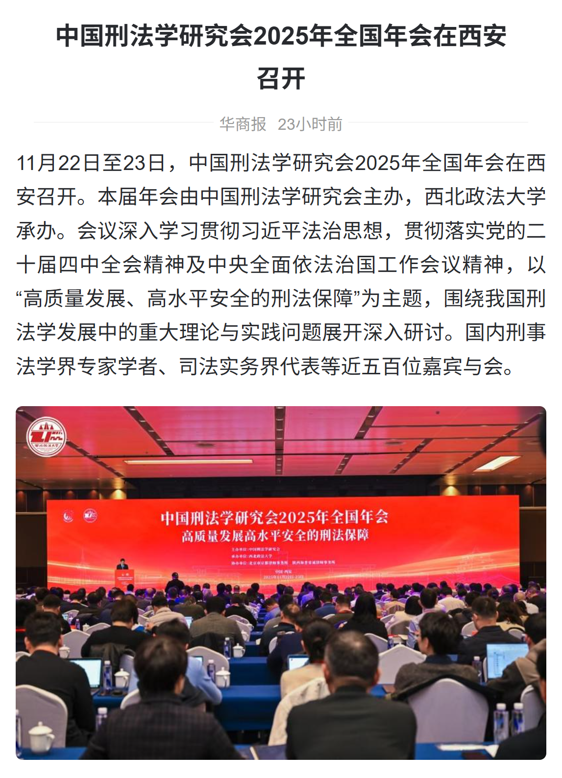 【中国日报网】中国刑法学研究会2025年全国年会在西安召开 共探刑法保障新路径https://shx.chinadaily.com.cn/a/202511/25/WS69251f7ca310942cc4993296.html