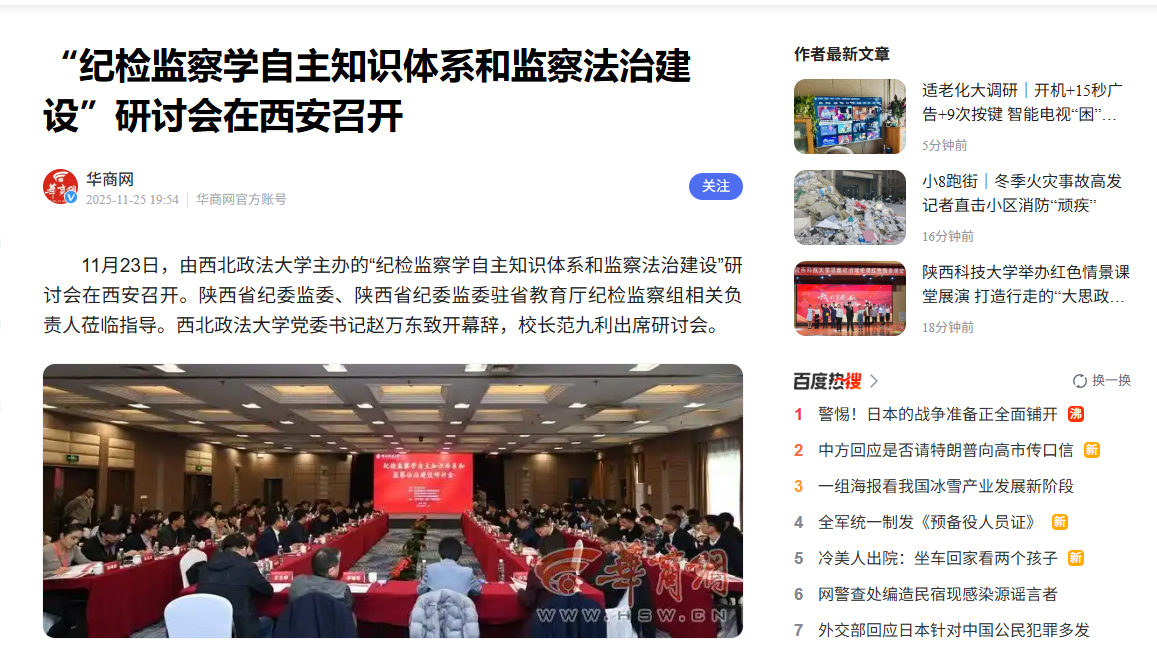 【华商网】纪检监察学自主知识体系和监察法治建设研讨会在西安召开https://news.hsw.cn/system/2025/1125/1889343.shtml