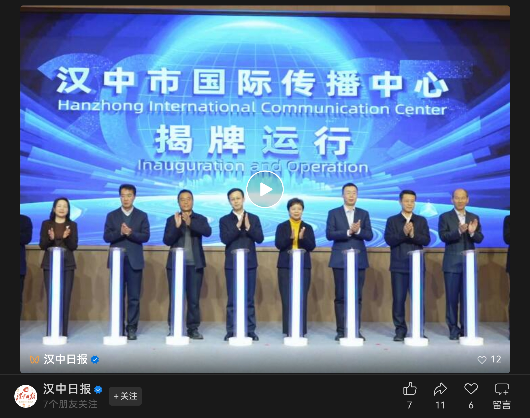 【汉中日报】汉中市国际传播中心揭牌运行