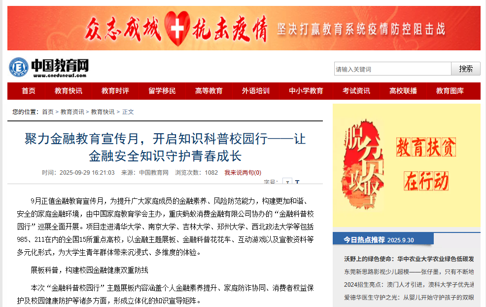 【中国教育网】聚力金融教育宣传月,开启知识科普校园行——让金融安全知识守护青春成长 http://www.cnedunews.com/edu/jyxw/18339.html