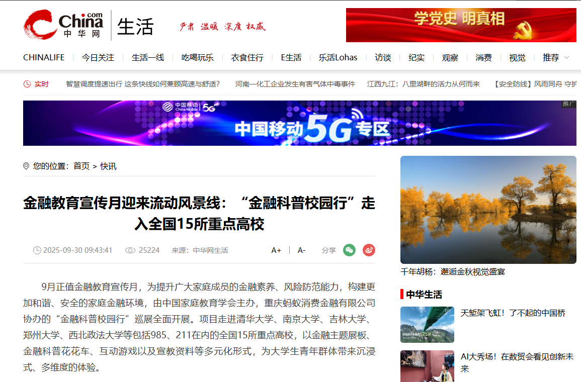 【中华网】金融教育宣传月迎来流动风景线:“金融科普校园行”走入全国15所重点高校 https://life.china.com/2025-09/30/content_493442.html