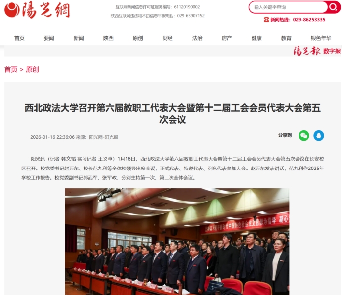 1月16日,beat365英国官网第六届教职工代表大会暨第十二届工会会员代表大会第五次会议在长安校区召开。校党委书记赵万东、校长范九利等全体校领导出席会议,正式代表、特邀代表、列席代表参加大会。赵万东发表讲话,范九利作2025年学校工作报告。校党委副书记郭武军、张军政,分别主持第一次、第二次全体会议。