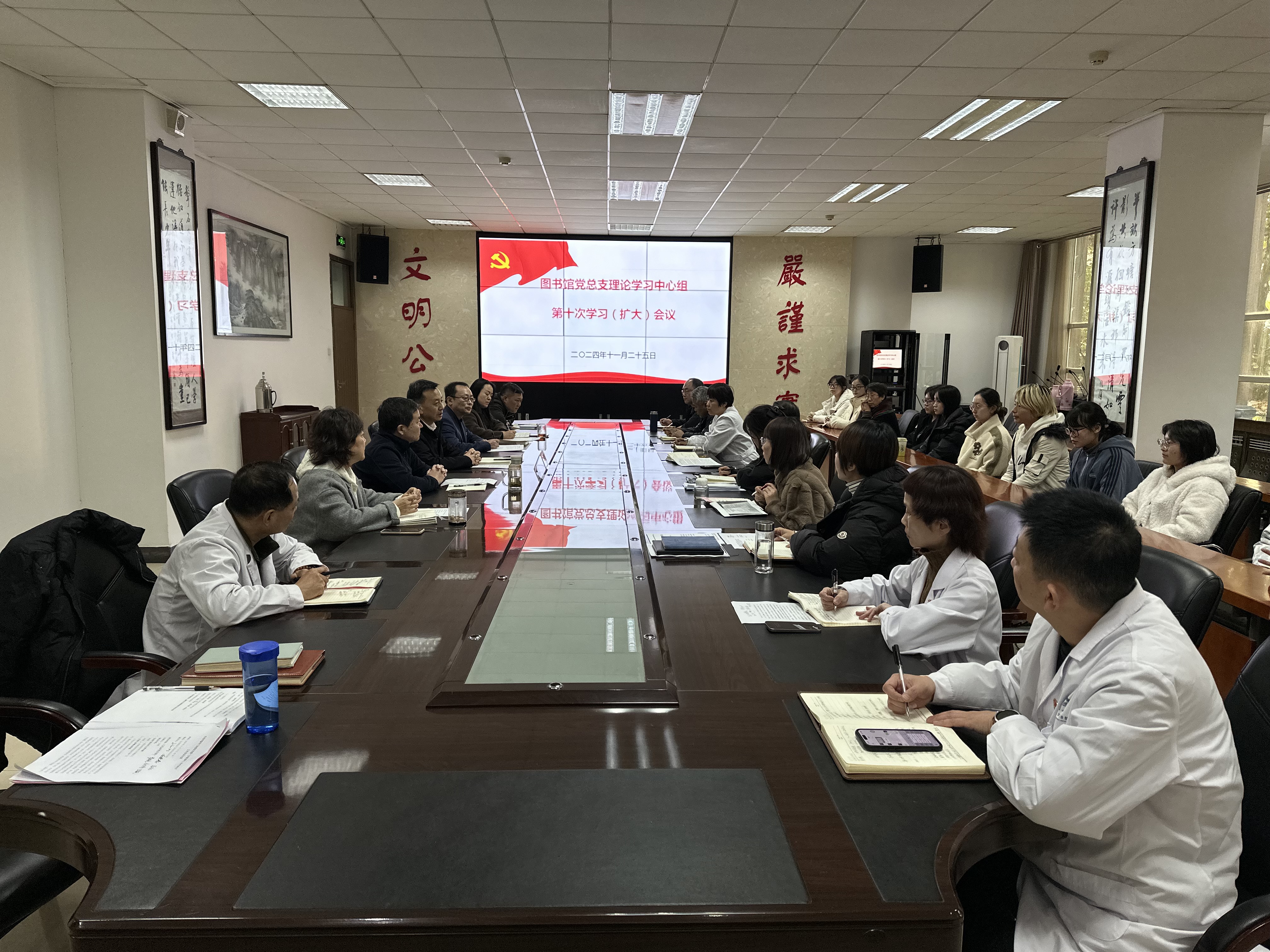 11月25日下午,图书馆党总支在长安校区图书馆召开理论学习中心组(扩大)第十次学习会议。副校长马朝琦出席会议,图书馆党总支理论学习中心组全体成员参加学习,图书馆党总支书记翁晓磊主持会议。