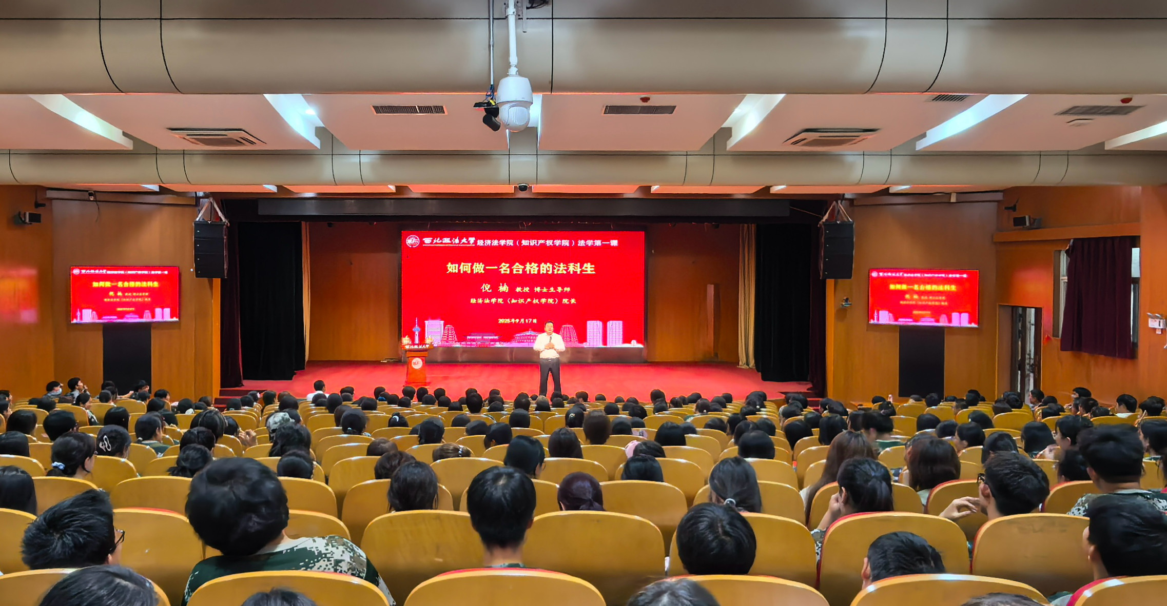 9月17日,经济法学院(知识产权学院)在长安校区满天星学术报告厅开展2025级新生“法学第一课”。
