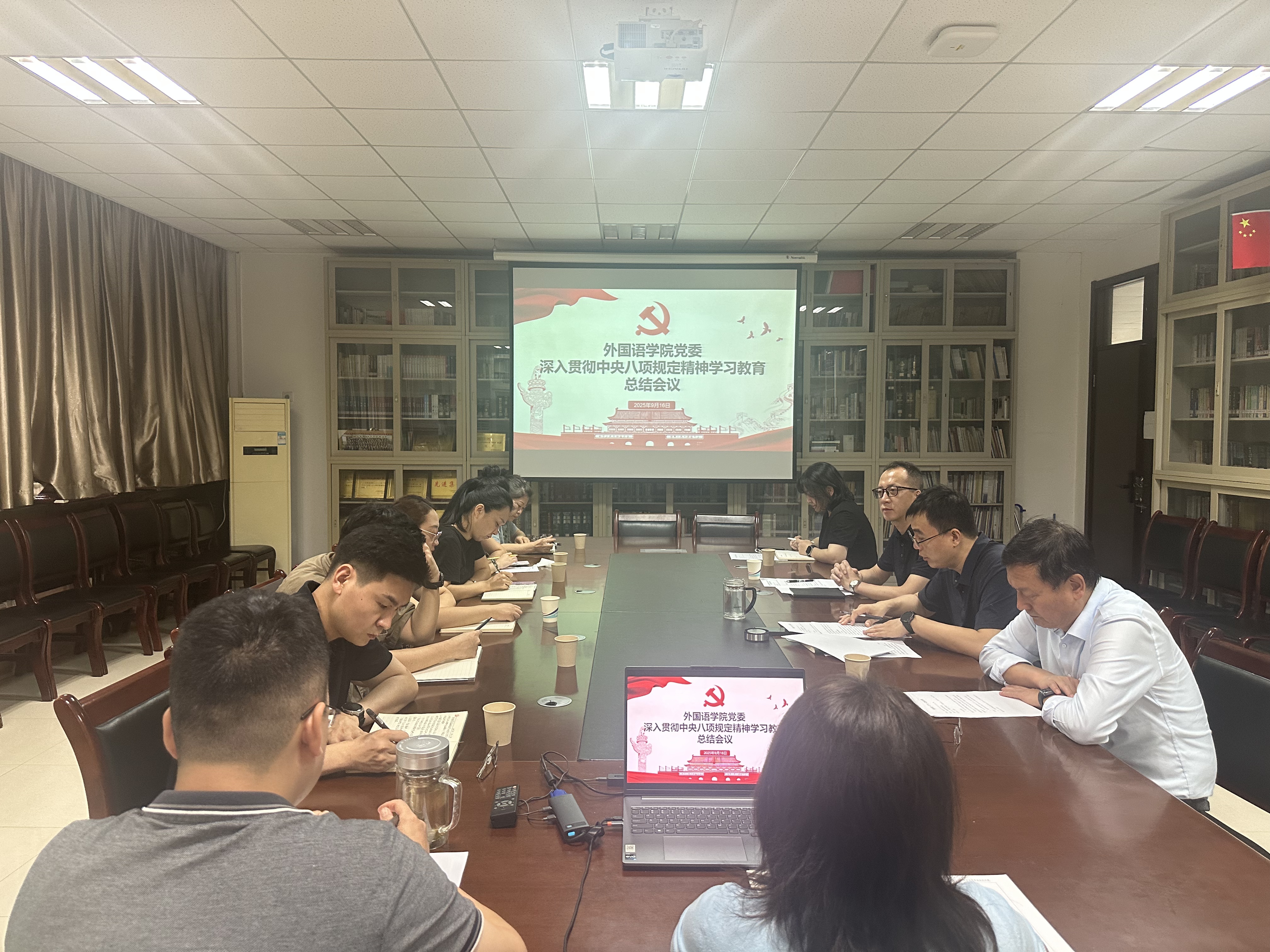 9月16日,外国语学院召开党委会(扩大)会议,对学院深入贯彻中央八项规定精神学习教育开展情况进行全面总结,持续巩固学习教育成果,推进学院作风建设常态化长效化。学院领导班子成员、党委委员、各党支部书记参会,党委书记杨华主持会议。