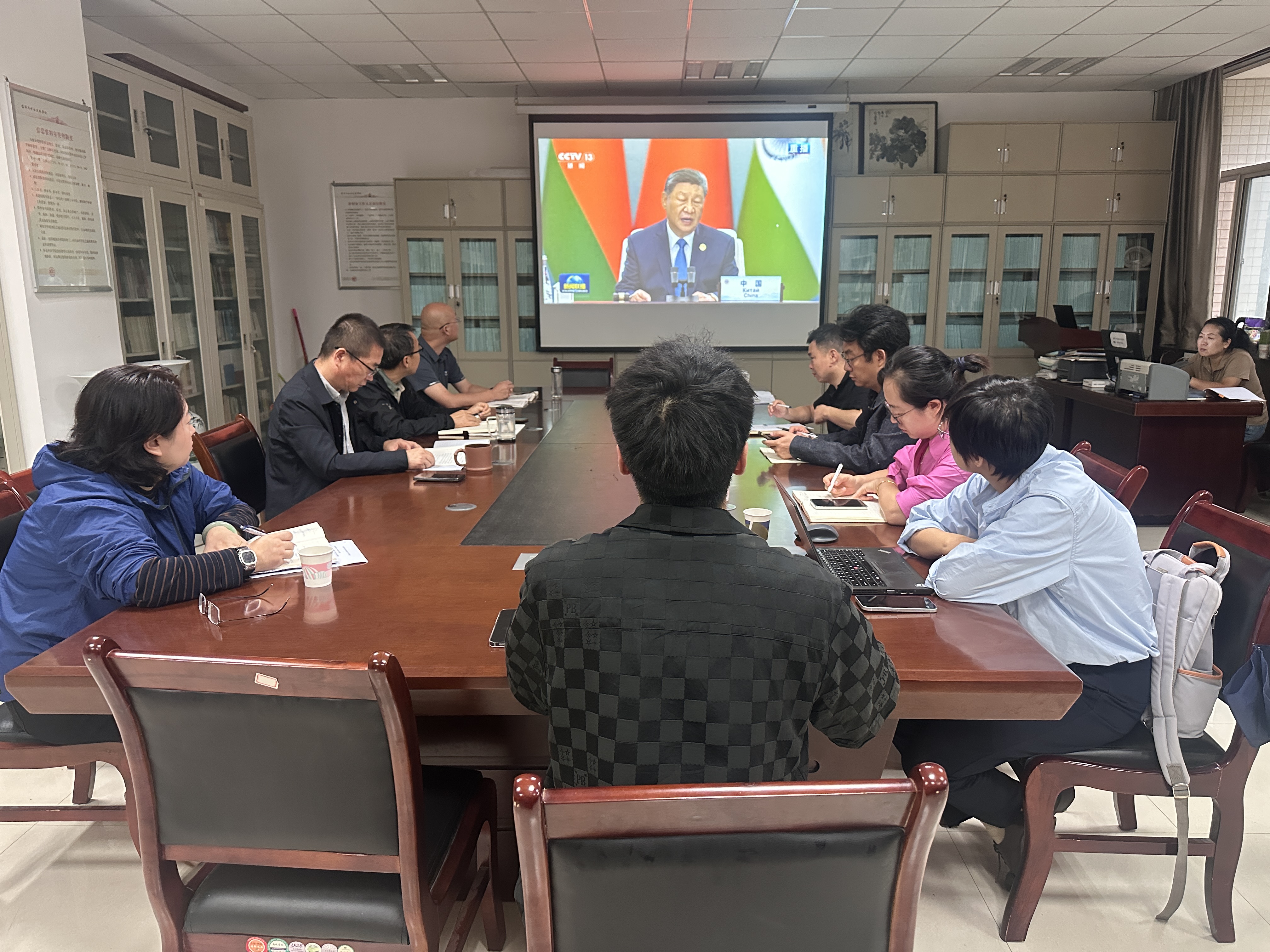 会议集中学习习近平总书记给全国特岗教师代表的回信精神、主持“上海合作组织+”会议时发表的重要讲话精神,《求是》杂志文章发表的习近平总书记重要文章《弘扬伟大抗战精神,向着中华民族伟大复兴的光辉彼岸奋勇前进》,学习中共中央政治局会议精神。